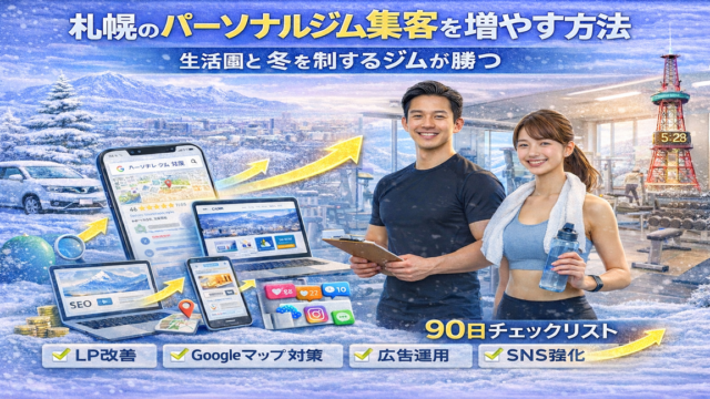 WEBマーケティング 札幌のパーソナルジム集客を伸ばす方法|SEO・MEO・広告・SNSの勝ち筋を解説 kamerad https://kame-rad.co.jp/wp-content/uploads/2025/01/kamerad-icon.png 札幌・北海道のWebマーケティングならKAMERAD株式会社