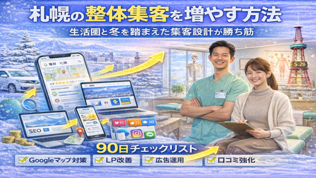 WEBマーケティング 札幌の整体集客を増やす方法|生活圏と冬を踏まえたSEO・MEO・広告・口コミの勝ち筋 kamerad https://kame-rad.co.jp/wp-content/uploads/2025/01/kamerad-icon.png 札幌・北海道のWebマーケティングならKAMERAD株式会社