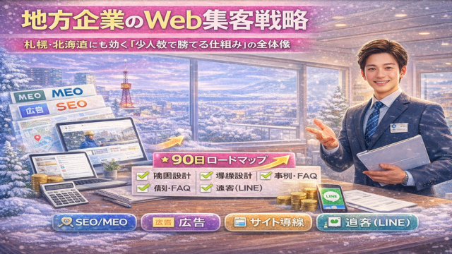 WEBマーケティング 地方企業のWeb集客戦略|札幌・北海道にも効く「少人数で勝てる仕組み」の作り方 kamerad https://kame-rad.co.jp/wp-content/uploads/2025/01/kamerad-icon.png 札幌・北海道のWebマーケティングならKAMERAD株式会社